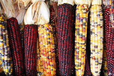 Maize, also known as corn, is a cereal grain first domesticated by indigenous peoples in southern Mexico about 10,000 years ago. The leafy stalk of the plant produces pollen inflorescences and separate ovuliferous inflorescences called ears that yield kernels or seeds, which are fruits. Maize has become a staple food in many parts of the world, with the total production of maize surpassing that of wheat or rice.